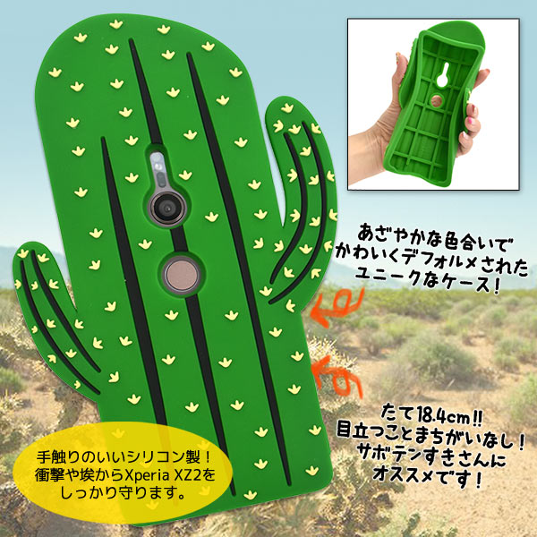目立つこと間違いなし!Xperia XZ2 SO-03K/SOV37/702SO用カバー サボテンケース デフォルメされたサボテンがかわいくユニークなケースです。