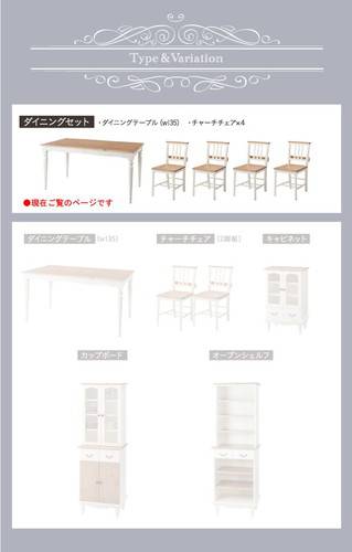 ダイニングセット 5点 4人用 姫系 かわいい 可愛い (ダイニングテーブル+チャーチチェア×4脚) ホワイト 白
