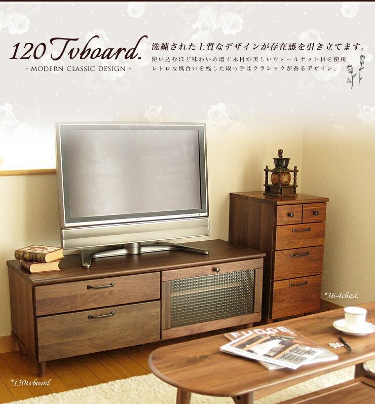 テレビボード おしゃれ ウォールナット 無垢材 120cm 幅 テレビ台 ローボード TV台 TVボード 収納 AVボード ウォルナット モダン クラシック 天然木 木製 木 おしゃれ かわいい 完成品 送料無料
