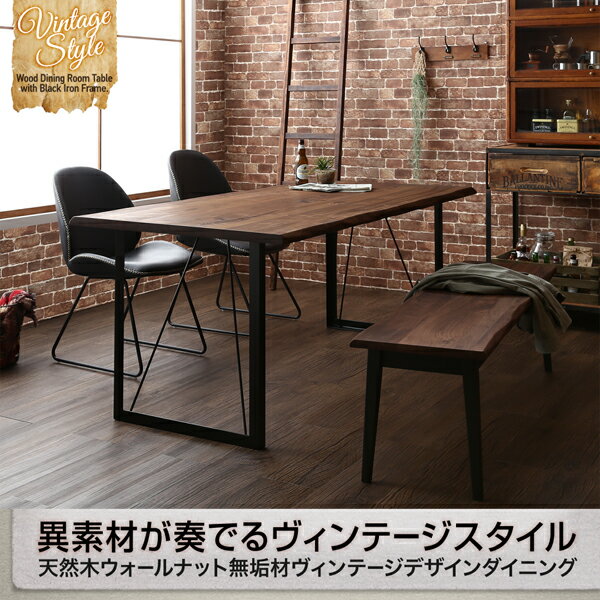 【更にP5倍★本日12:00〜23:59】 天然木ウォールナット無垢材ヴィンテージデザインダイニング 5点セット(テーブル+チェア4脚) W180