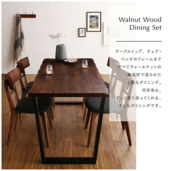 総無垢材ダイニング Tempus テンプス 5点セット(テーブル+チェア3脚+ベンチ1脚) ウォールナット 板座 W180